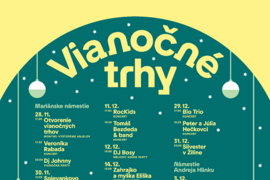 Vianočné trhy potrvajú do 31. decembra a ponúknu koncerty známych mien aj regionálnych interpretov. Na pódiu sa vystriedajú Celeste Buckingham, Tomáš Bezdeda & band, Leona Machálková, Peter a Júlia Hečkovci, Janais s kapelou či Bio Trio. O sviatočné piesne sa postará Acapeople, Pieter Versluis a detské zbory, ktoré vystúpia 10. decembra na Námestí Andreja Hlinku.