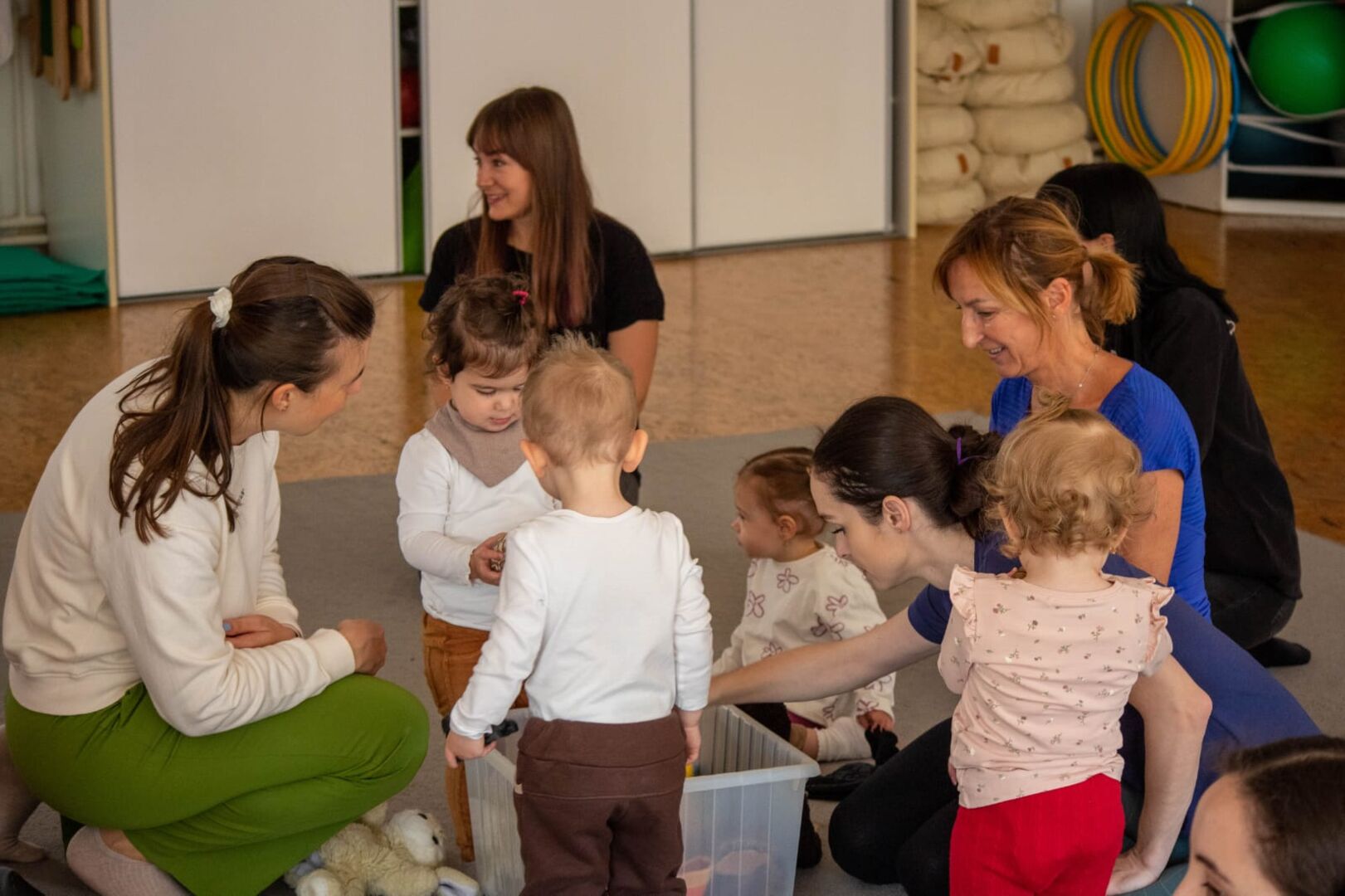 Babyfit od začiatku nestaval len na samotnom cvičení. Dôležitou súčasťou bola aj možnosť byť spolu – rodičia so svojimi deťmi, ale aj deti medzi sebou. Spoločný pohyb v skupine pomáha od detstva prirodzene vnímať prítomnosť iných, učiť sa reagovať na nové podnety a postupne si zvykať na kolektív.