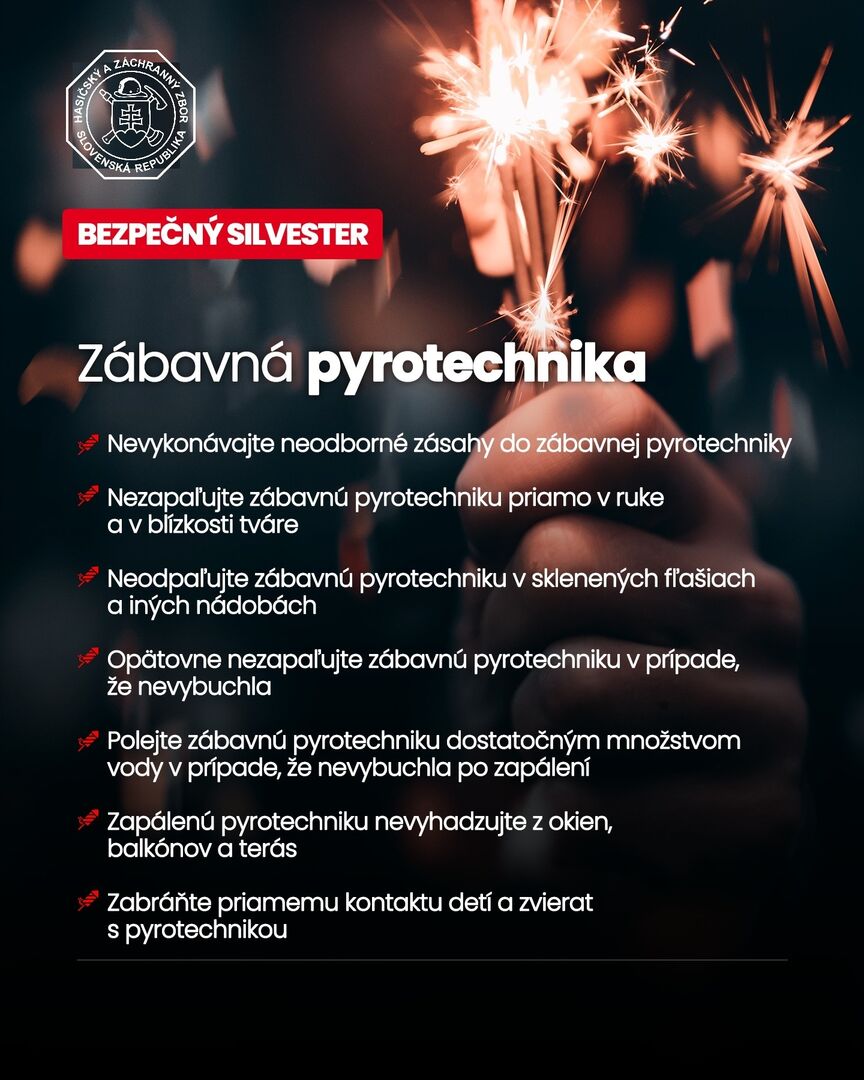 Silvestrovská noc je každoročne spojená s množstvom zásahov záchranných zložiek. Najčastejšie ide o popáleniny, úrazy rúk, poškodenie sluchu či zraku. V niektorých prípadoch majú zranenia aj trvalé následky, vrátane amputácií prstov. Nebývalo nič výnimočné, keď desiatky ľudí skončili na Nový rok v nemocnici kvôli ohňostrojom či petardám. Používanie zábavnej pyrotechniky na Slovensku upravuje novela zákona o výbušninách, ktorá platí od januára 2024. Zakázaná je pyrotechnika, ktorá primárne spôsobuje hluk, ako napríklad petardy. Povolené zostávajú len výrobky kategórie F1 a obmedzené používanie pyrotechniky kategórií F2 a F3 v presne stanovených hodinách.