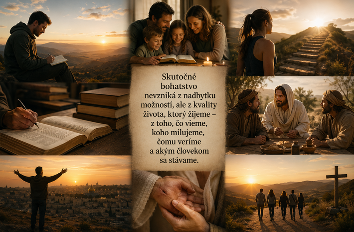 Bohatší život nestojí na objeme majetku, ale na odvahe rásť. Vyžaduje si čas na poznanie, vernosť vo vzťahoch, disciplínu charakteru, schopnosť niesť neistotu i ochotu hľadať zmysel za hranicou okamžitého úspechu. Veci možno kúpiť rýchlo, no múdrosť dozrieva pomaly. Komfort sa dá zabezpečiť, ale vnútorná hĺbka sa rodí len tam, kde človek vedome pracuje na sebe. Skutočné bohatstvo nevzniká z nadbytku možností, ale z kvality života, ktorý žijeme – z toho, čo vieme, koho milujeme, čomu veríme a akým človekom sa stávame.