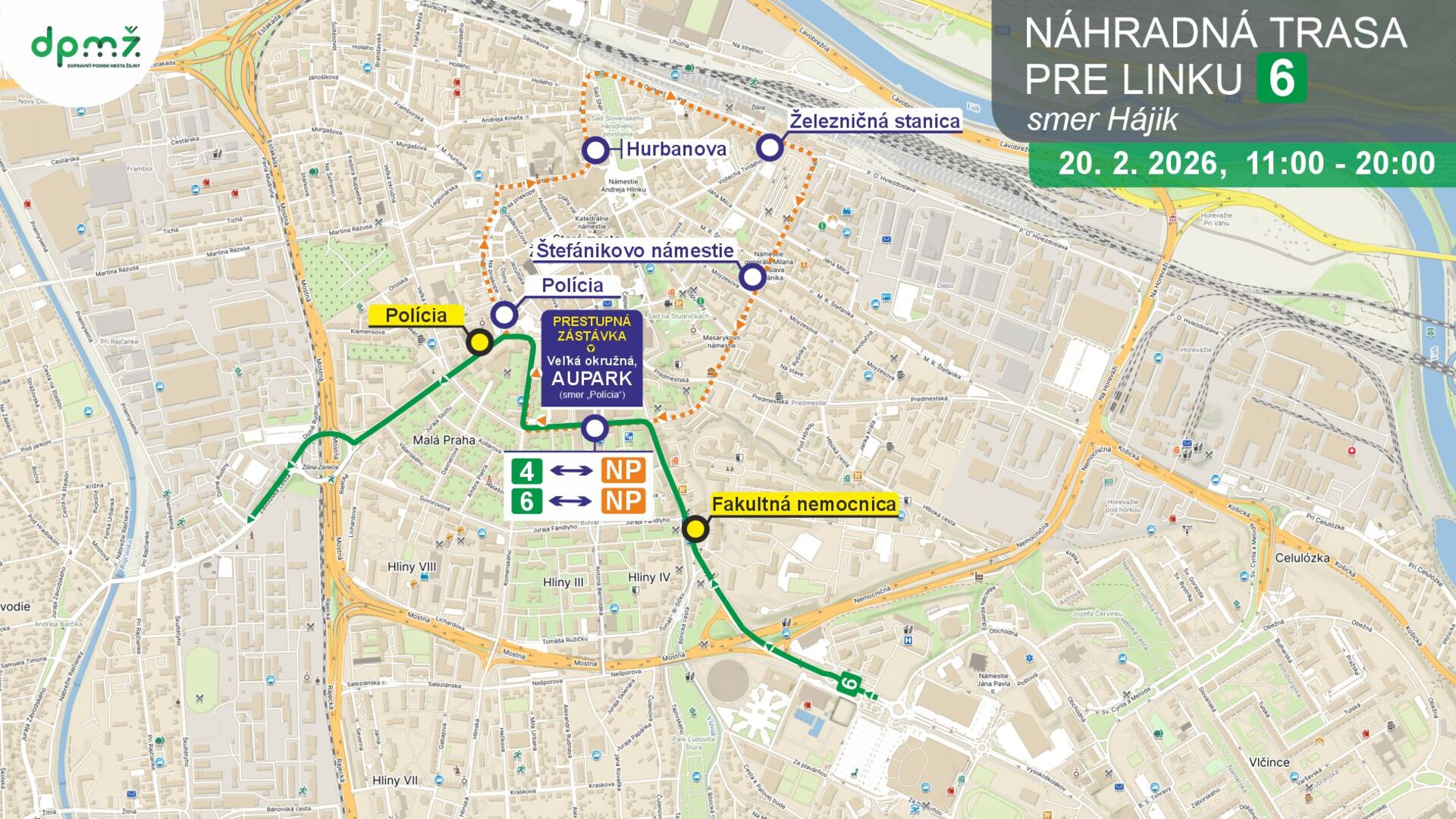 Prestup na náhradnú dopravu bude zabezpečený na zastávke Veľká okružná, AUPARK.