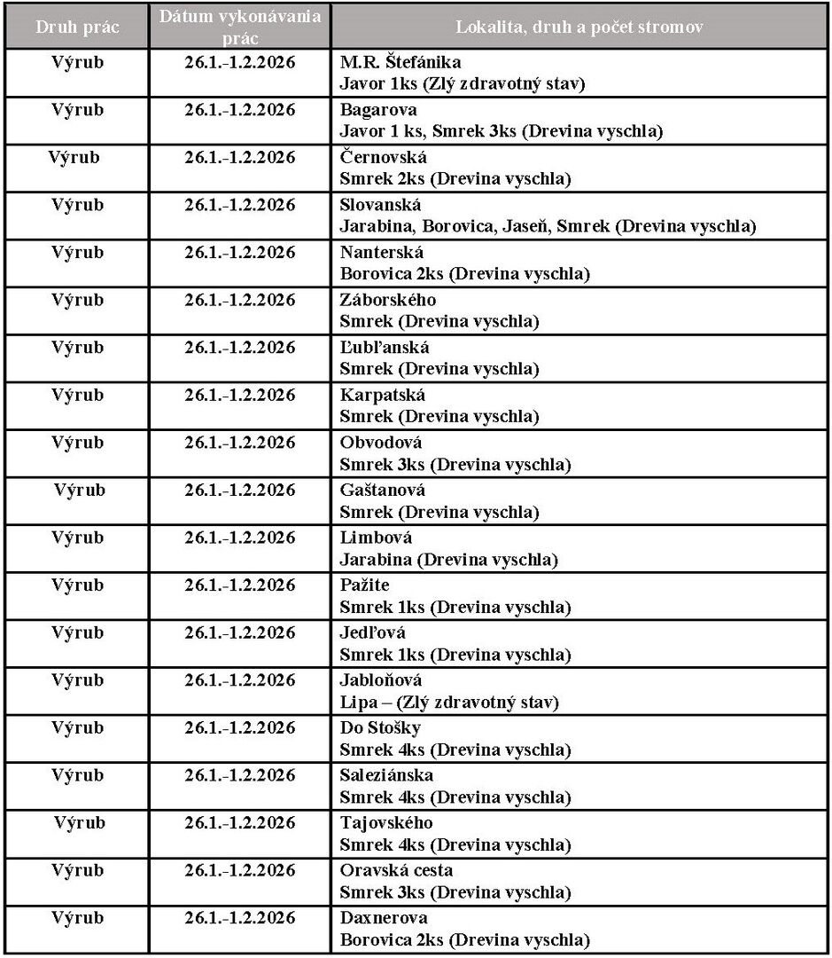 Ako vysvetľuje hovorkyňa mesta Zuzana Ondrášová, zimné mesiace sú z biologického hľadiska pre výrub najvhodnejšie: „Dôvodov, prečo sa aktuálne robia výruby, je viacero. Stromy sú v tomto období v hlbokom vegetačnom pokoji, takže zásah do nich je z biologického hľadiska najmenej škodlivý. Zároveň ide o čas mimo hniezdnej sezóny vtáctva, čo znamená, že na drevinách sa nenachádzajú aktívne hniezda chránených druhov.“ Výhodou tohto obdobia je aj lepšia prehľadnosť terénu. Listnaté stromy sú bez olistenia, čo zvyšuje bezpečnosť pri práci, a pevnejšia či zamrznutá pôda zároveň znižuje riziko poškodenia okolitého prostredia.