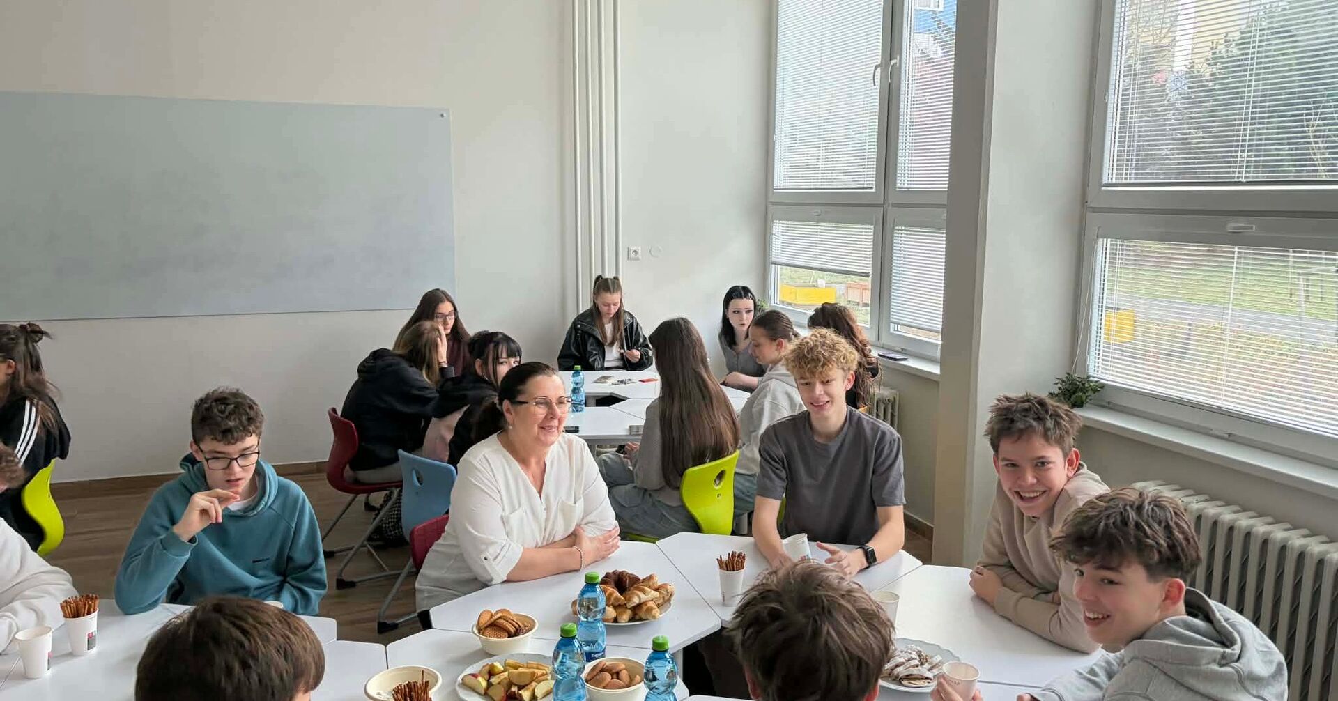 Žiakov privítalo príjemné prostredie a stoly plné drobného občerstvenia – nechýbali bábovky, croissanty, ovocie ani čokoláda. Okrem jedla však dostali aj podporu od pedagógov. Povzbudiť ich prišla riaditeľka školy, triedne učiteľky aj členovia školského podporného tímu. „Naším cieľom bolo, aby deň začali v pokojnej, príjemnej atmosfére a cítili podporu zo strany školy. Aj takouto formou dbáme o duševné zdravie a psychickú pohodu našich žiakov,“ uviedla zástupkyňa riaditeľky Marcela Mačeková.