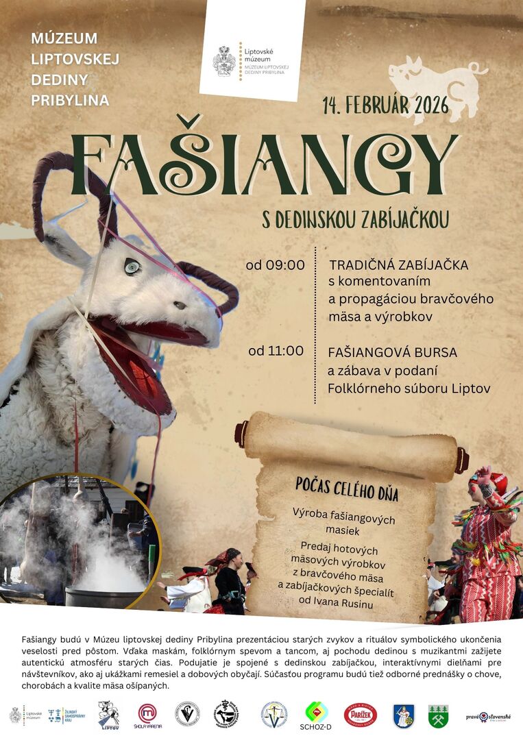 „Fašiangový sprievod v podaní Folklórneho súboru Liptov roztancuje návštevníkov v liptovskej dedine. Vďaka maskám, folklórnym spevom, tancom a pochodu dedinou s muzikantmi budú môcť návštevníci zažiť autentickú atmosféru zašlých čias. Fašiangy budú prezentáciou starých zvykov a rituálov symbolického ukončenia veselosti pred pôstom,“ uviedla Silvia Vančová, programová manažérka Liptovského múzea.