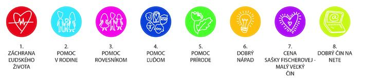 · pisatelia môžu zaradiť dobré skutky do niektorej z ôsmich kategórií: