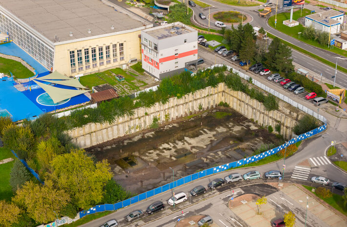 Priestor, medzi miestnymi známy ako jama, bol v minulosti súčasťou areálu vonkajších bazénov plavárne. Neskôr prešiel do súkromného vlastníctva, jednu parcelu mesto Žilina predalo v roku 1999 a druhú v roku 2004. Na mieste sa plánovala výstavba výškového komplexu Žilina – Business Center, ktorý však nikdy nebol realizovaný. Výsledkom bola viac než desaťročná stagnácia – ostala tu len jama, ktorú Žilinčania poznali ako zanedbané a oplotené miesto v širšom centre mesta.