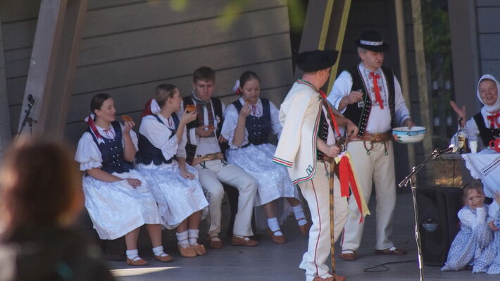 Od 14:30 hod sa rozprúdi folklórny program, ktorý ponúkne autentické vystúpenia folklórnych skupín zo Zborova nad Bystricou. FSk Zborovanka predstaví pásmo Hrabanie trávy, DSSk Nezábudka ukáže starodávne Pranie na potoku. Hudobnú náladu doplnia Zborovskí heligonkári, Ženská spevácka skupina Zborovské ozveny, ako aj mladí interpreti Natálka Gavenčiaková, Ninka Kubaščíková a Súrodenci Jánošíkovci.