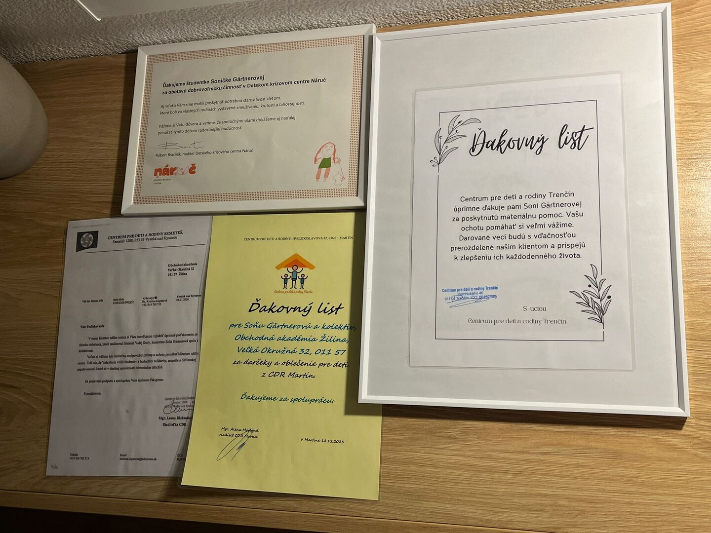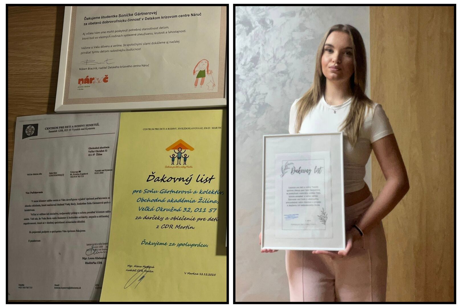 Bol to projekt, ktorý spojil školskú komunitu. Rodičia a zamestnanci školy piekli koláče, ktoré Soňa so svojimi kamarátkami predávala v oddychovej zóne obchodnej akadémie. Atmosféra solidarity priniesla ovocie: výťažok 255 eur bol do posledného centu použitý na nákup hygienických potrieb pre detský domov v Trenčíne, kde konkrétne tieto veci potrebovali. Okrem financií sa podarilo vyzbierať približne 70 veľkých tašiek oblečenia a hračiek pre domovy v Semeteši a Martine.