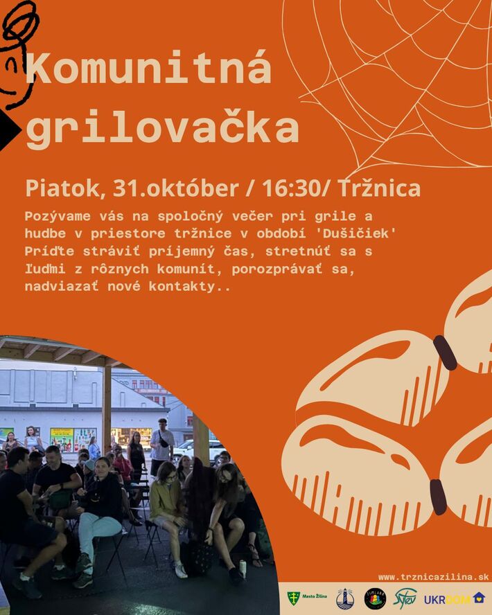 „Pozývame vás na spoločný jesenný večer pri grile, hudbe a dobrej spoločnosti priamo v priestore tržnice! Stretnú sa tu dobrovoľníci, mladí ľudia a komunity z rôznych organizácií, aby spolu strávili príjemný čas, porozprávali sa a nadviazali nové kontakty,“ uviedli organizátori.