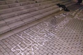 Symbolický nápis „Názor nie je trestný čin“ bol napísaný aj pred budovou okresného súdu, kde však nevydržal dlho – niekto ho stihol odstrániť ešte skôr, než farba kriedy začala blednúť. Pred žilinskou centrálou strany Smer sa zase objavil výrazný proti-vládny odkaz, ktorý sa stal jedným z najviac fotografovaných. Napriek tomu, že niektoré nápisy zmiznú v priebehu pár hodín, iné pribúdajú každým dňom. Krieda spája ľudí svojou jednoduchosťou – nenásilná, dočasná, no s jedným posolstvom naprieč celým Slovenskom.