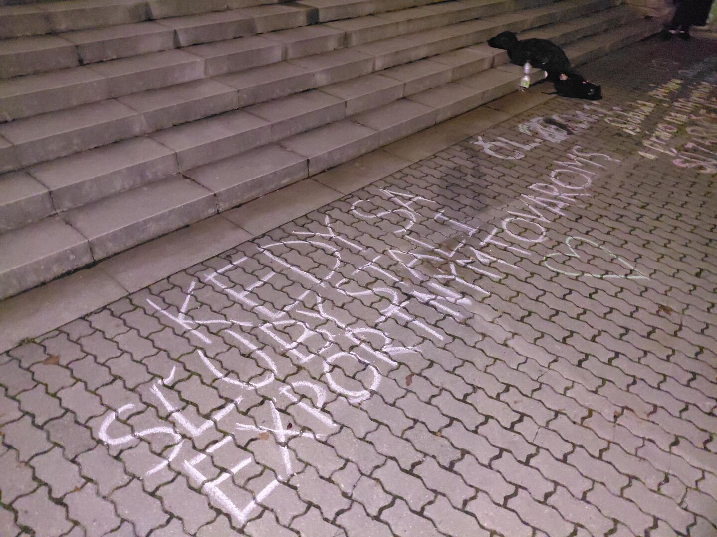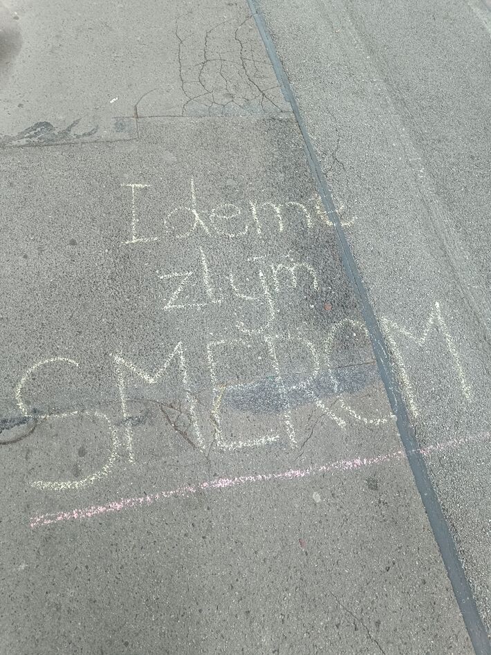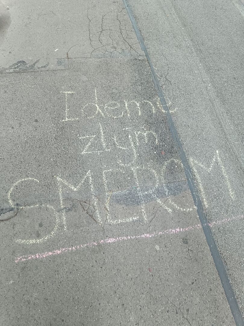 Zatiaľ čo v centre mesta nájdeme roztrúsené vety, pred bilingválnym gymnáziom na Ulici Tomáša Ružičku nadobudli kriedové odkazy podobu takmer celouličnej výzvy. Povrch chodníkov pokrývajú desiatky nápisov, kresieb a symbolov. Objavili sa tu aj motívy ukrajinských vlajok, srdiečka s nápisom „Pravda zvíťazí“, či odkazy znejúce „Ideme zlým SMERom“ alebo „Fico sa bojí študentov“. Svoj názor tu vyjadrilo podľa odhadov zhruba sto študentov, ktorí si vybrali kriedu ako formu pokojného vyjadrenia postoja. Nejde pritom o organizované protesty – skôr o spontánnu reakciu mladých ľudí, ktorí nechcú zostať ľahostajní. V čase, keď sa spoločnosť vracia k hodnotám 17. novembra, majú tieto odkazy osobitú silu.