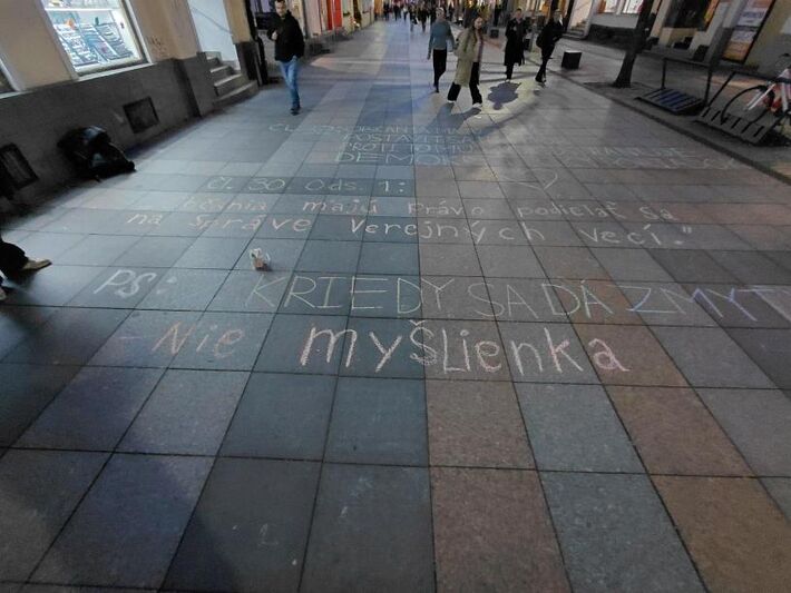 Kriedové posolstvá vyvrcholia symbolicky práve v týždni okolo 17. novembra, keď si Slovensko pripomína Deň boja za slobodu a demokraciu. Farebné slová na chodníkoch tak nadobúdajú ešte silnejší rozmer – ako tichá, pokojná, ale jasná pripomienka, že sloboda prejavu je základným pilierom demokratickej spoločnosti. Aj keď sa krieda časom zmyje, posolstvá, ktoré priniesla, zostanú v spoločenskej pamäti ešte dlho.