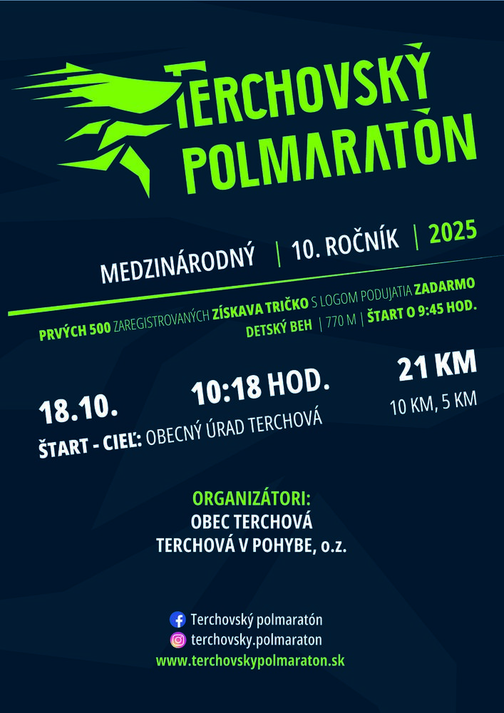Bežci si môžu aj tentokrát vybrať z certifikovanej polmaratónskej trate, alebo kratších behov na 10 km a 5 km. Súťažiť sa bude o atraktívne ceny a putovnú terchovskú trofej. Pre najmenších účastníkov je pripravený detský beh ulicami Terchovej, tvorivé aktivity a maľovanie na tvár, nechýba teda zábava pre celú rodinu. Terchovský polmaratón však nie je len o športe, je aj o pomoci tým, ktorí to najviac potrebujú. Tento rok pobežíme pre šesťročného Matiaska, ktorý trpí detským autizmom.