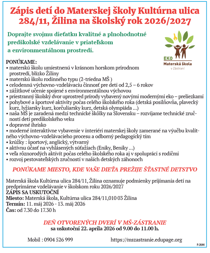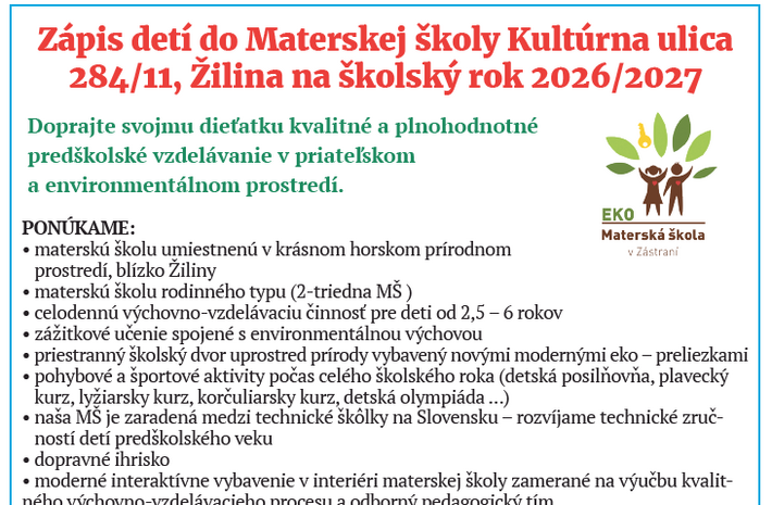 Príďte sa v stredu 22. apríla od 9:00 do 11:00 presvedčiť osobne a urobte prvý krok k šťastnému detstvu vášho dieťaťa. Čo všetko táto výnimočná materská škola ponúka sa dozviete na plagáte nižšie: