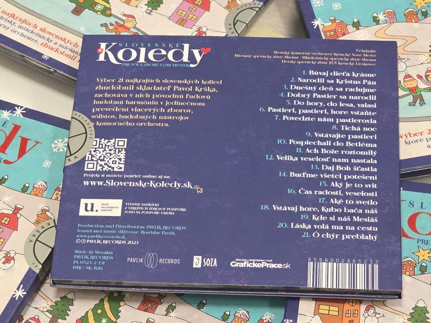 Na CD aj USB Slovenské koledy nosiči zaznieva 21 kolied, medzi nimi Búvaj, dieťa krásne, Narodil sa Kristus Pán či ikonická Tichá noc. Nahrávka ponúka mimoriadne jemnú a slávnostnú zvukovú paletu, v ktorej sa mieša silný zborový výraz s detskou spontánnosťou, orchestrálnym sprievodom a citlivými sólovými vstupmi. Každá z kolied tak v poslucháčovi prirodzene vyvoláva pokoj, teplo a sviatočnú náladu, ktorá je pre Vianoce typická. Celý projekt je dostupný aj online na stránke SlovenskeKoledy.sk a jeho vydanie podporil Fond na podporu umenia.