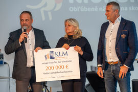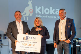Spoločnosť KLM Real Estate sa rozhodla aj pri otvorení tohto OC Klokan investovať niečo naviac v regióne. Pre Žilinu to znamená odovzdanie šeku FNsP Žilina vo výške 20.000 EUR na nákup technického vybavenia pre vzdelávanie lekárov.