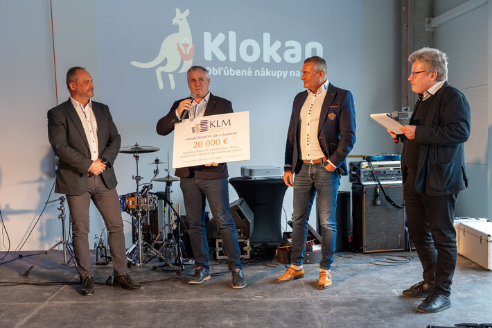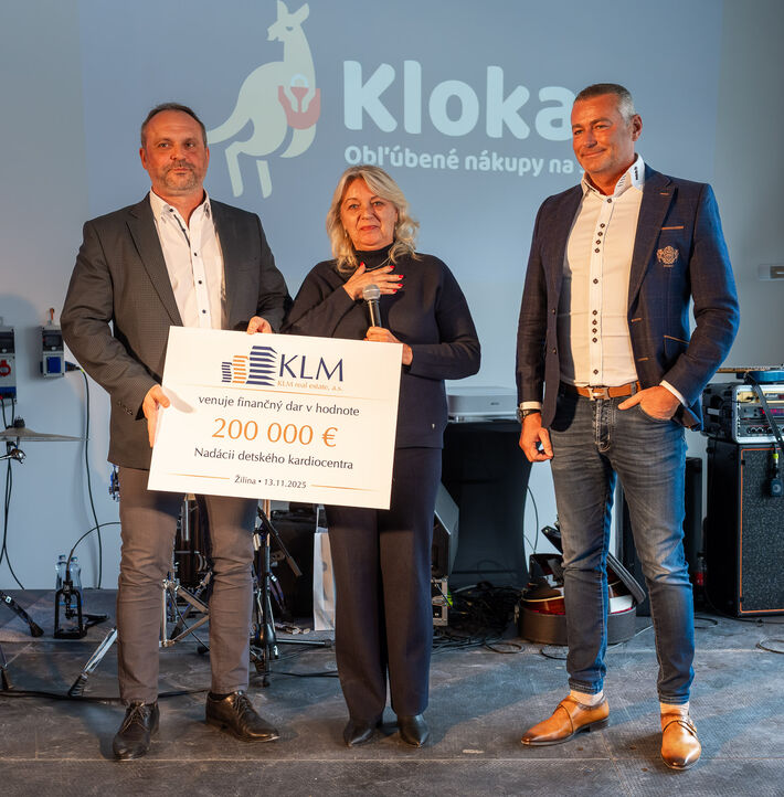 Spoločnosť KLM Real Estate sa rozhodla aj pri otvorení tohto OC Klokan investovať niečo naviac v regióne. Pre Žilinu to znamená odovzdanie šeku FNsP Žilina vo výške 20.000 EUR na nákup technického vybavenia pre vzdelávanie lekárov.