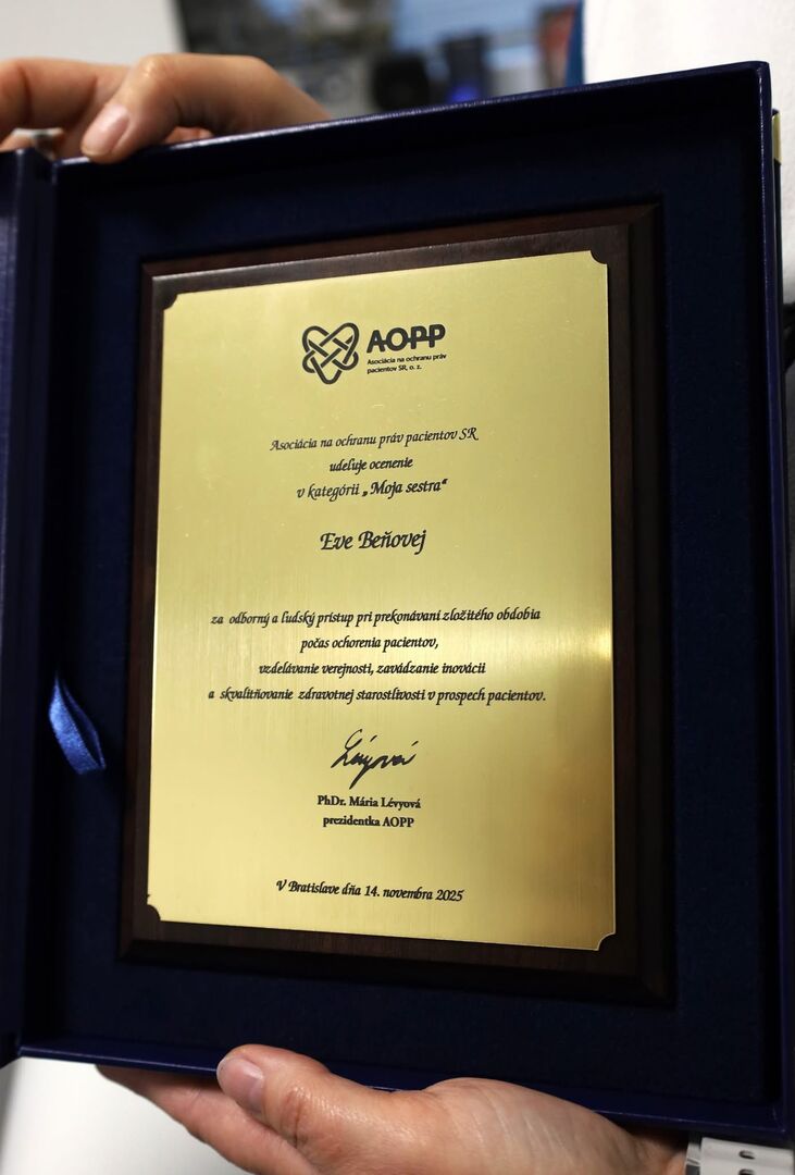 "Chcela by som sa poďakovať za ocenenie, ktoré som získala od Asociácie na ochranu práv pacienta. Ďakujem veľmi krásne za každý jeden hlas, či už to bol pacient, či to bol človek známy alebo neznámy, verte, že si to skutočne vážim, a budem pracovať naďalej tak ako som to robila doteraz," povedala ocenená sestra Eva Beňová.