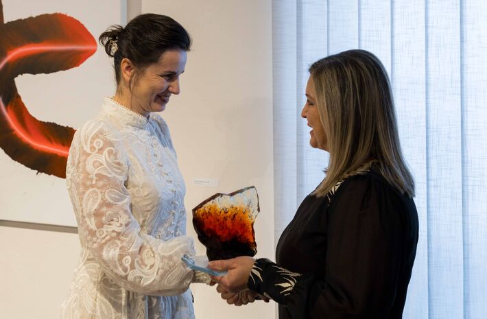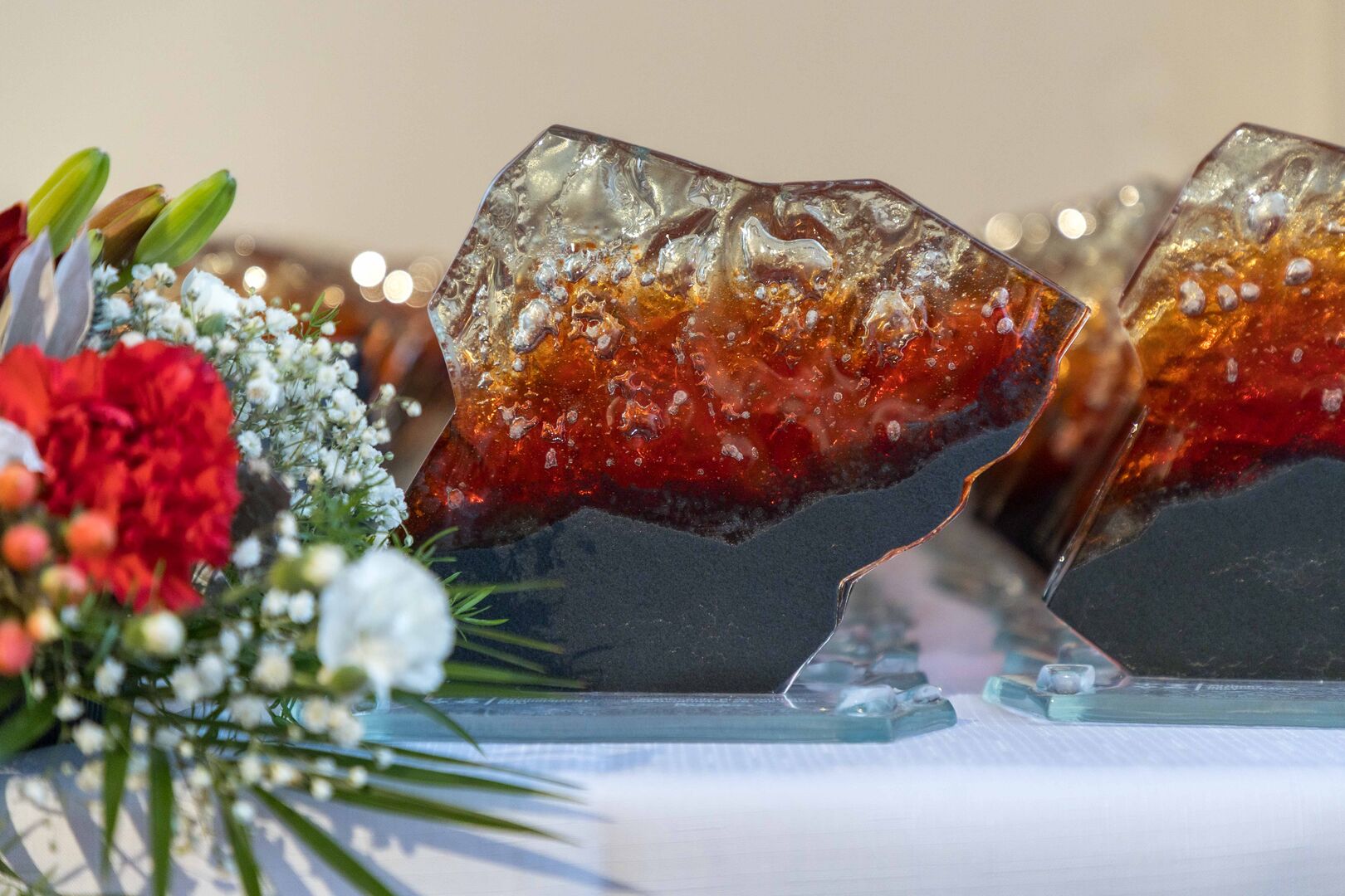 Ocenenie „Horizont pomoci a uzdravenia“, ktoré si prevzali ocenení v priestoroch Oravskej galérie v Dolnom Kubíne bolo vytvorené ako sklenená metafora cesty, ktorou dennodenne sprevádzajú svojich pacientov aj kolegov zdravotnícki a nezdravotnícki pracovníci. Tvar pripomínajúci členitý kraj prináša obraz životnej cesty – nerovnej, náročnej, plnej prekážok, no zároveň smerujúcej vpred. Spodná tmavá vrstva predstavuje neistotu, chorobu a zložité chvíle, ktorým čelia ľudia v starostlivosti aj tí, ktorí im pomáhajú. Postupný prechod do teplej žiarivej červenej línie v strede symbolizuje okamih, keď sa stretáva profesionalita, ľudskosť a pomoc.