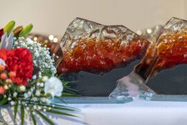 „Práve tento „svetelný horizont" je momentom nádeje – bodom, kde vzniká nový začiatok, nový dych, nové možnosti. Horná časť z číreho skla už otvára priestor pre svetlo, prehľadnosť a istotu. Vyjadruje uzdravenie, stabilitu a to, čo môže vzniknúť vďaka obetavosti a oddanej práci ľudí v zdravotníctve – aj tých, ktorí stoja pri pacientoch priamo, aj tých, ktorí svojou podporou vytvárajú neviditeľné, no nevyhnutné zázemie. Každý kus ocenenia je originál, rovnako ako každý príbeh pomoci. „Horizont pomoci a uzdravenia“ tak vzdáva úctu všetkým, ktorí svojou prácou prinášajú svetlo tam, kde je ho najviac treba. Autorom je Peter Duriš,“ upresnila Silvia Pekarčíková, riaditeľka odboru zdravotníctva ŽSK.