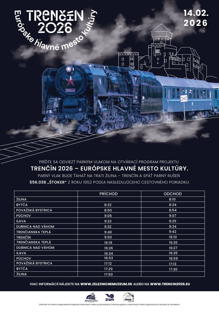 Parný vlak tak ponúkne nielen nevšedný zážitok z cestovania, ale aj možnosť pohodlne sa dostať za kultúrou do Trenčína a zažiť výnimočnú atmosféru, ktorá tento rok mesto čaká. Viac informácií nájdete priamo na stránke železničného múzea.