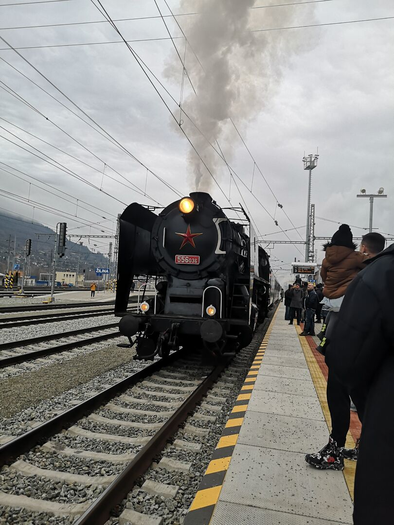 Na čele súpravy sa predstavil parný rušeň 556.036 prezývaný „Štoker“ z roku 1952, o ktorý sa dlhodobo starajú dobrovoľníci zo Spolku Výhrevné Vrútky. Už samotný príchod vlaku vyvolal veľký záujem a plné nástupište bolo dôkazom, že historické vlaky majú u Žilinčanov stále silnú fanúšikovskú základňu.