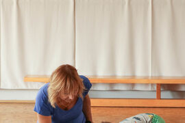 A. M.: Fitlopty, lebo sú mäkké, pérujú a udávajú pohybu rytmus. Deti na nich trénujú rovnováhu, orientáciu v priestore a zapájajú celé telo, aby nespadli. Niektorým deťom napríklad nie sú príjemné záklony na lopte, a keďže nechceme, aby bolo telo dieťaťa v napätí, postupujeme pomaly od malého pohybu k väčšiemu rozsahu.