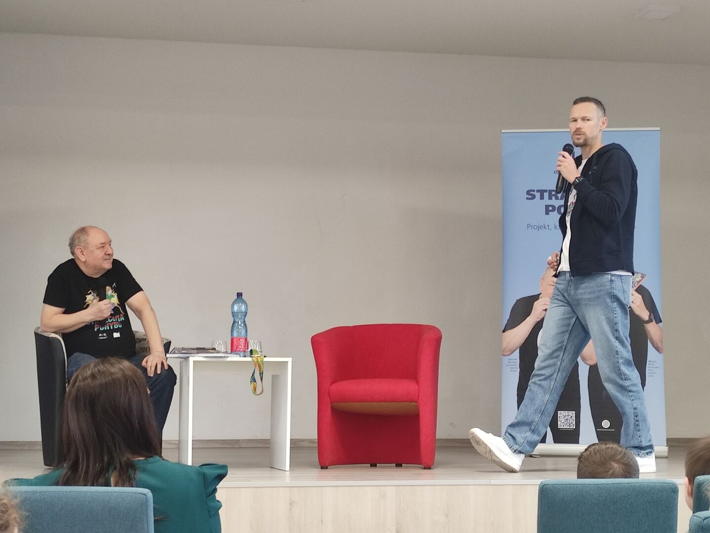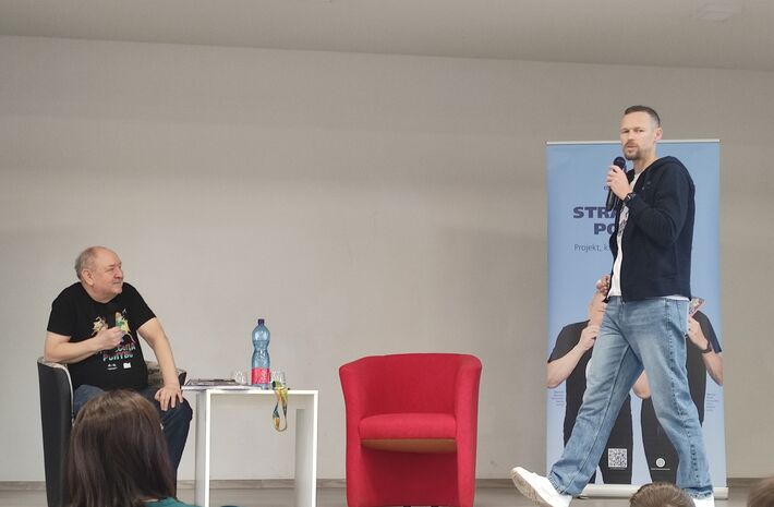Zároveň nás pán Hevier vtiahol do deja svojej novej knihy, porozprával nám o tom, čo všetko ho inšpiruje k písaniu, ako tvorí svoje príbehy, dokonca žiakom zarapoval jednu zo svojich básní. V závere nášho obohacujúceho stretnutia sa do diskusie zapojili aj žiaci, ktorí oboch hostí zasypali zvedavými otázkami a zarecitovali básne z tvorby Daniela Heviera. Dopoludňajšie stretnutie sme ukončili autogramiádou a spoločným fotením.
