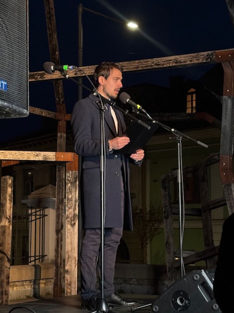 Na pódiu sa vystriedala pestrá paleta rečníkov z radov študentstva. Svoje postoje vyjadrili Jakub Filek, Michal Lábaj, Alex Marek Képeš, Danielle Palkovič, Eliška Pokorná, Natália Hakulinová a Dominik Zurovac, ktorý prečítal aj prejav Phillipa Angelova. Podujatie však ukázalo, že téma rezonuje naprieč generáciami. Podporu mladým prišli vyjadriť aj osobnosti žilinského verejného života – Marek Adamov za Novú synagógu a manželia Bachratí z Fakulty riadenia a informatiky UNIZA. Atmosféru protestu dotvorili hudobné vystúpenia speváčok Alžbety Poláčkovej a Kataríny Svrčkovej.