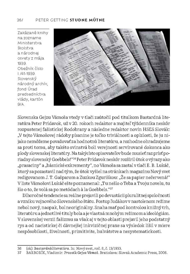 „Pokiaľ režim na Slovensku v rokoch 1939 – 1945 chápeme ako totalitný a zločinný, zámerom je poukázať, aký podiel na tomto zločine mali slovenskí literáti, básnici, spisovatelia a publicisti. Isteže, totalita by existovala aj bez ich podpory, avšak treba upozorniť na málo známy – či už neúmyselne alebo zámerne – obchádzaný fakt, že s pomocou šokujúcej časti slovenskej literárnej obce bola táto cesta dláždená oveľa ľahšie, než podnes priznávame. Bola to totiž práve aj kolaborácia tých, ktorí sú stereotypne titulovaní spoločnosťou aj samými sebou ako ‚svedomie národa‘ a ‚studnice našej kultúry‘. Počas dlhých šiestich rokov to však boli studne mútne.“ Peter Getting