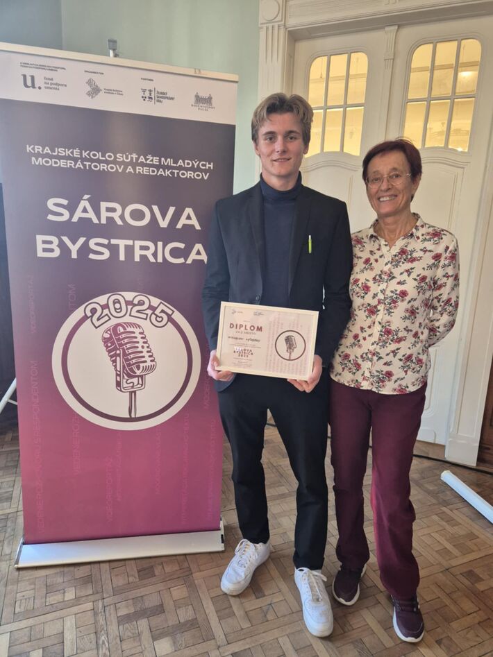 5. novembra 2025 školu reprezentoval žiak oktávy A, Michal Lábaj. Ukázal nadpriemerné moderátorské schopnosti a kreativitu pri tvorbe vlastných textov počas prípravy na súťaž. Po samostatnom moderovaní relácie, čítaní spravodajstva, vopred natočenej reportáži a rozhovore si vybojoval v kategórii od 15 do 18 rokov 2. miesto. Jednou zo spomínaných disciplín súťaže bol aj rozhovor so zaujímavým človekom a Michal si vybral svoju starkú. Vek ani zdravotný hendikep jej nebránia v tom, aby bola aktívnou cyklistkou. Keď jej to počasie dovolí, sadne na bicykel a zvládne aj 50 kilometrovú trasu. Michal viedol rozhovor s citom, rešpektom a zároveň s novinárskou zvedavosťou, čím ukázal, že vie nielen rozprávať, ale aj počúvať. Jeho voľba a spracovanie témy porotu zaujali a rozhovor sa stal jedným z vrcholov jeho prezentácie.
