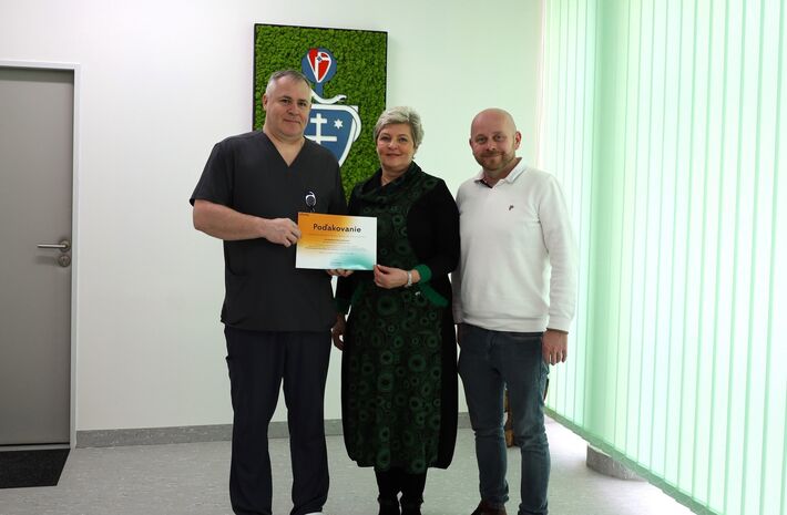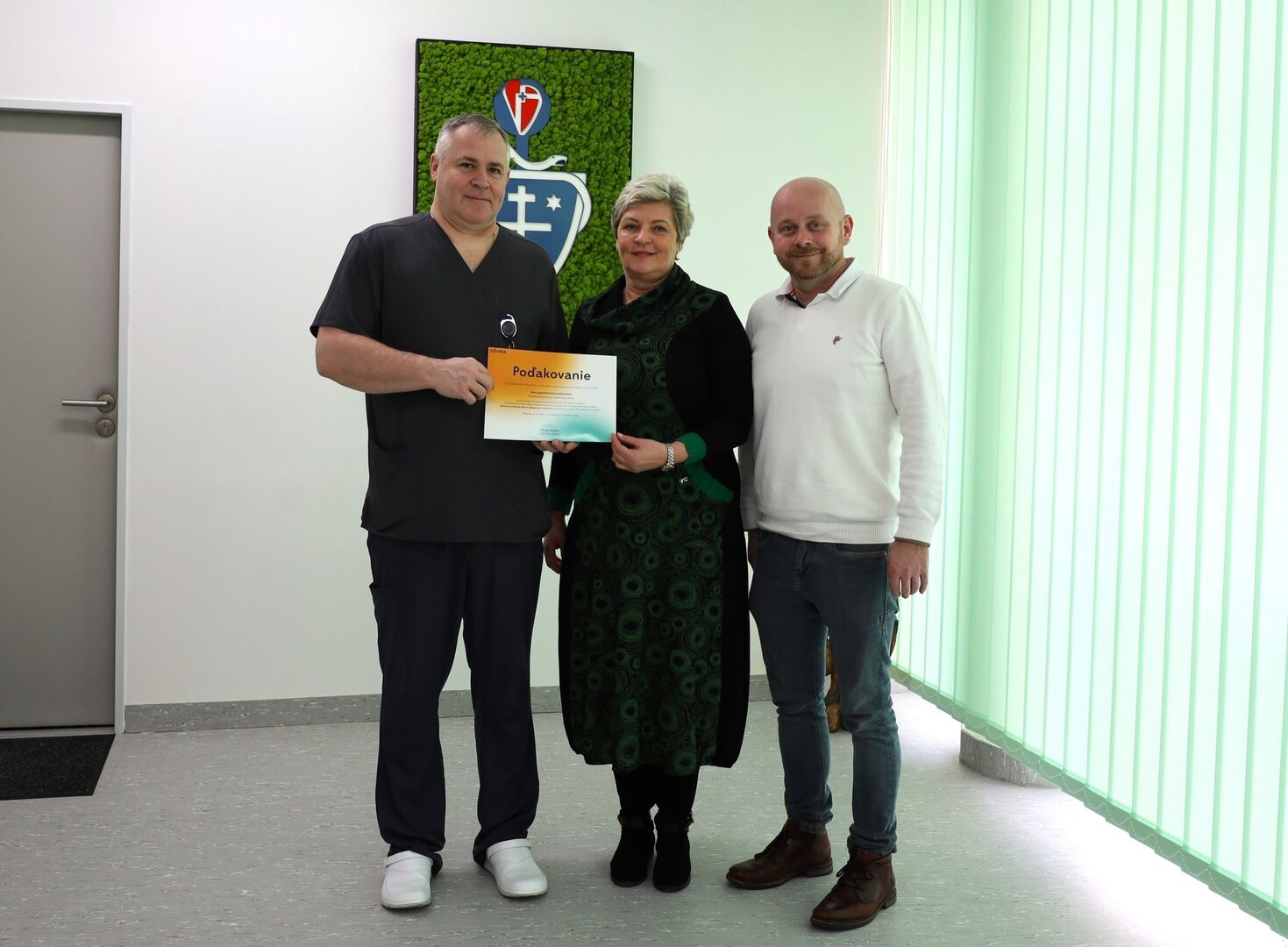 Riaditeľ žilinskej nemocnice Juraj Kacian, ekonomicko-technický námestník Pavol Záň a primárka oddelenia psychiatrie Oľga Vöröšová si prevzali poďakovanie priamo z rúk regionálnej riaditeľky nákupu zdravotnej starostlivosti Boženy Holbičkovej. Spolu s ocenením dostali poukážku v hodnote 500 eur na nákup v spoločnosti Alza.sk, ktorá má byť symbolickým vyjadrením uznania za každodennú snahu tímu.