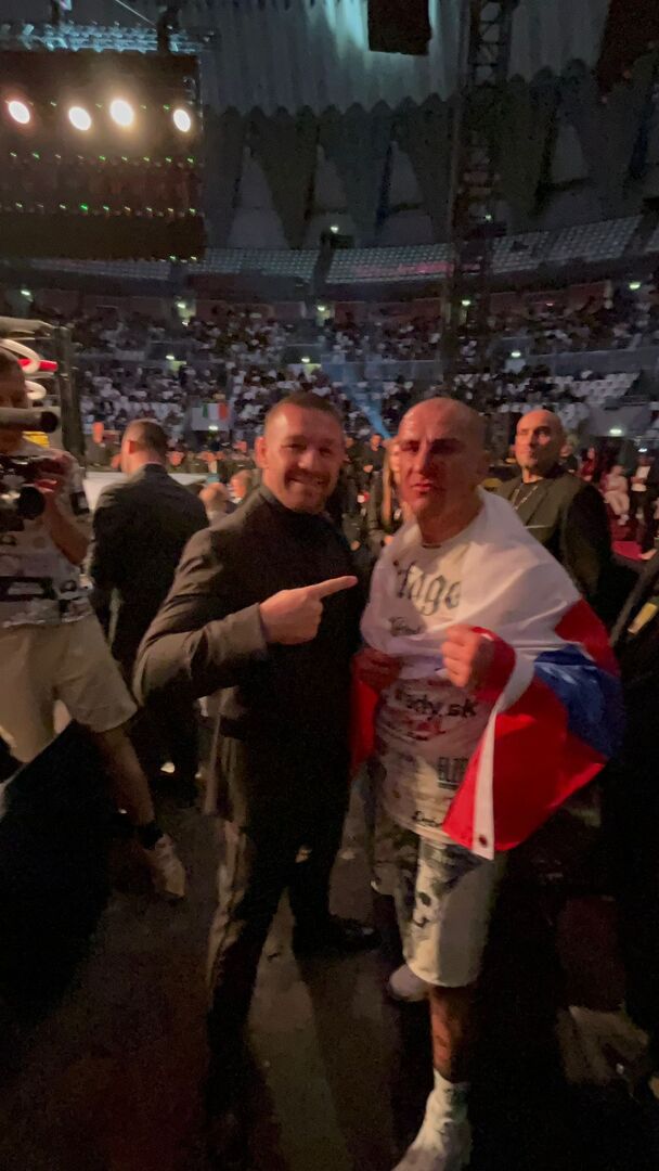 Veľkej pocte sa nášmu žilinskému borcovi dostalo po zápase, keď prehodil pár slov aj s hviezdnym Írom. „Prezident David Feldman a spolumajiteľ organizácie Conor McGregor boli na nohách, plus osobné pogratulovanie od Conora za výkon v zápase bola “malá” bodka večera pre mňa a môj tím. Rád by som aj poďakoval za podporu, pretože Cyril Pažitný (majiteľ slovenskej organizácie Králi Ulice a môj manažér), Lukáš Piffko a Eva Borodačová mi dodávali neskutočnú energiu.“