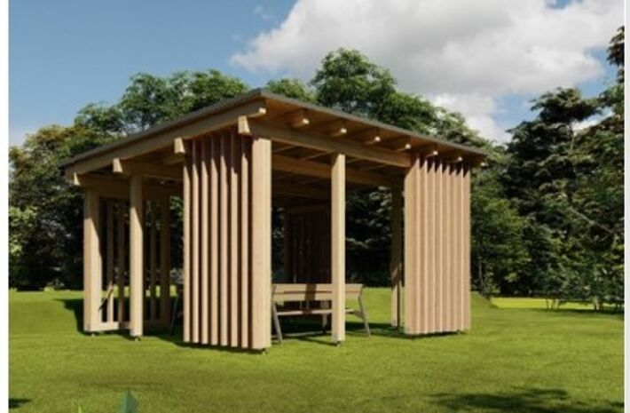 Každý z altánkov má štvorcový pôdorys s rozmerom približne 4×4 metre a otvorený dizajn, ktorý umožňuje vstup zo všetkých strán. Konštrukcia je doplnená drevenými lamelami, ktoré poskytujú tieň, no zároveň zachovávajú vizuálne prepojenie s okolitou zeleňou.