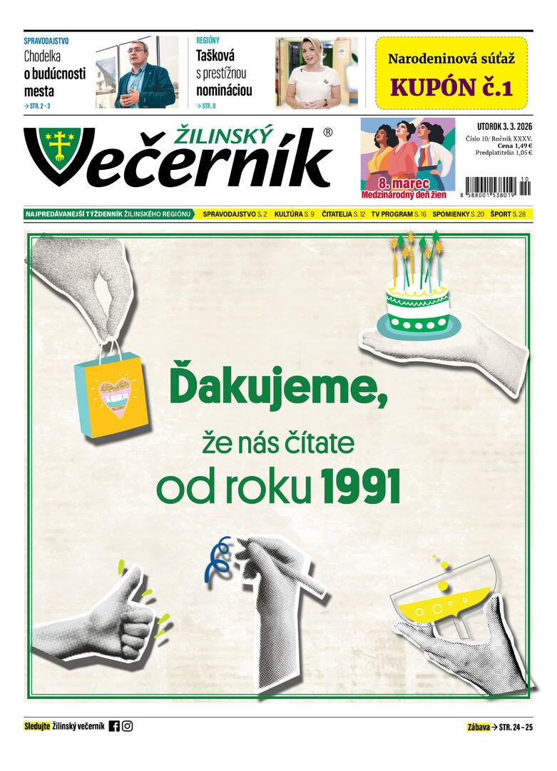 NARODENINOVÁ SÚŤAŽ Žilinského večerníka + prvý kupón na titulke.