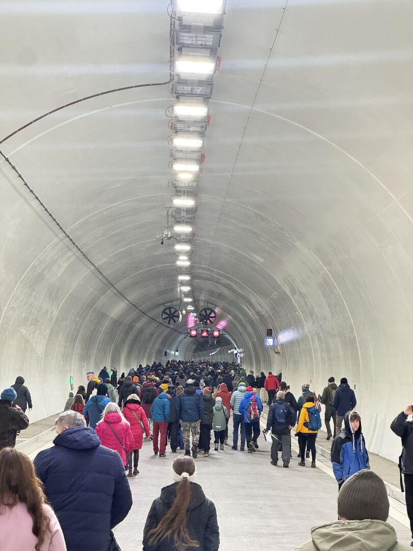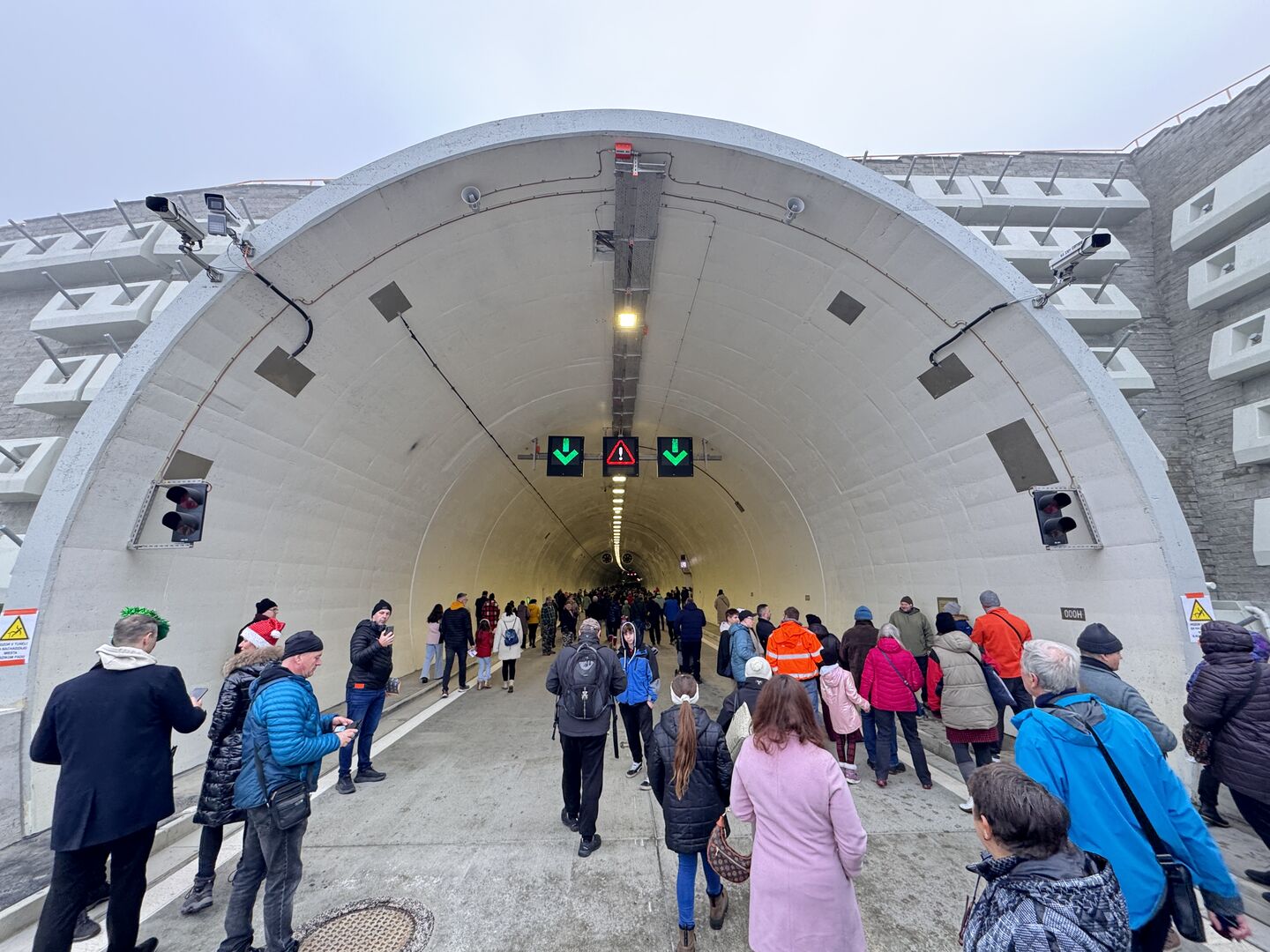 Už od skorého rána sa pri prístupových cestách tvoria dlhé rady áut a peších, polícia usmerňuje dopravu a dobrovoľníci pomáhajú návštevníkom nájsť parkovacie miesta. Mnohí prišli rodinne s deťmi, iní si urobili netradičný výlet pred Vianocami. Okrem samotnej prehliadky zaujíma verejnosť aj technická stránka tunela – vybavenie, bezpečnostné prvky či fungovanie protipožiarneho systému.