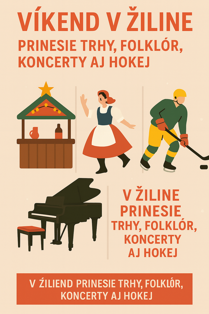 Vianočné trhy prinášajú do centra Žiliny tradičné chute, punč, remeselné výrobky aj hudobné vystúpenia. Novinkou je klzisko priamo medzi stánkami. Mesto tak štartuje advent v plnom lesku a víkendový program osloví každého – od detí cez milovníkov umenia až po športových nadšencov.