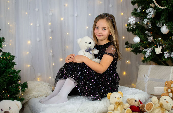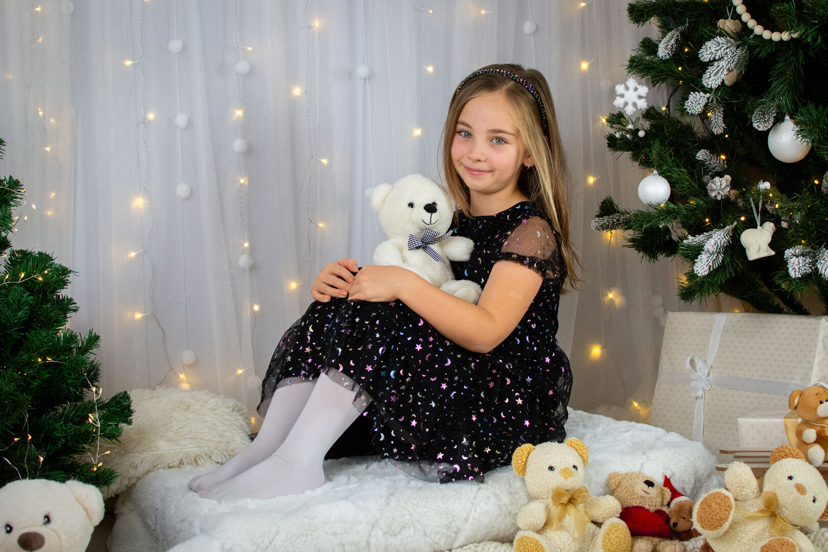 Tí, ktorí k nám chodia pravidelne na vianočné fotenie, už vedia, že každý rok je pripravené niečo nové pre deti. Tento rok je nachystaná hlavná vianočná scéna v bielej, zlatej a béžovej farbe. Pracovne ju voláme vianočná obývačka, je primárne určená na spoločné rodinné fotografie. Obývačka plynulo prechádza do časti určenej hlavne pre deti. Bude v rovnakých farbách a bude zábavnejšia a hlučnejšia. Tento rok to je hudobná scéna, ktorá vykúzli z fotenia detský vianočný koncert. Bude plná svetielok, melódií a drobných nástrojov, ktoré vtiahnu malých muzikantov do hry a prinesú prirodzené, veselé momenty. Obe scény budú pôsobiť sviatočne, vianočne. Posledná scéna bude tiež hlavne pre detičky, pretože v nej bude veľa, ale naozaj veľa darčekov. Na svoje si prídu najmä chlapci, tí milujú darčeky - hrať sa s nimi, skúmať, či v nich náhodou niečo nie je ukryté. A dievčatká sa určite rady pridajú.