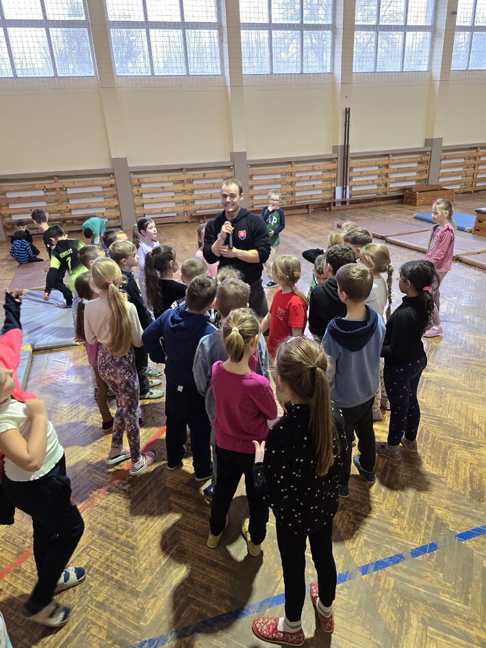 Základná škola v Dolnej Tižine dlhodobo dbá na rozvoj nielen vedomostí, ale aj charakteru a zdravia svojich žiakov. Snažíme sa motivovať deti k pohybu rôznymi spôsobmi, no vždy rady privítajú niečo nové. Tentokrát sme stavili na skutočný zážitok – vystúpenie športového idola, spojené s prednáškou a možnosťou zacvičiť si s ním a s jeho kolegami.
