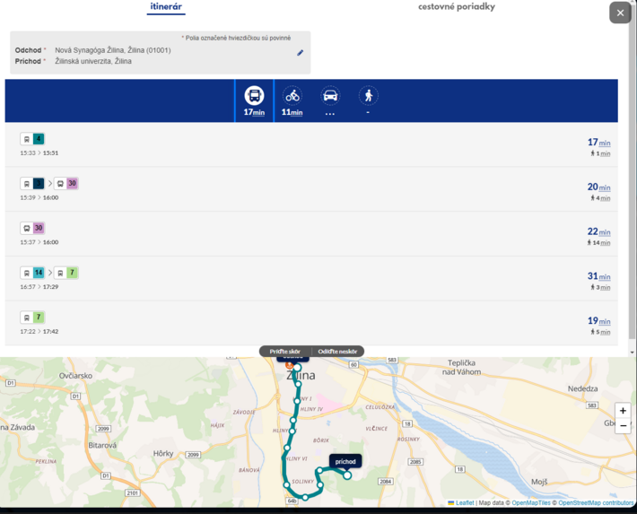 Žilinská samospráva spustila do prevádzky vlastný smart vyhľadávač, ktorý je priamo prispôsobený dopravným podmienkam a možnostiam mesta. „Našou dlhodobou snahou je motivovať obyvateľov i návštevníkov Žiliny k tomu, aby uprednostňovali hromadnú, ekologickú a udržateľnú dopravu pred individuálnou automobilovou dopravou. Neustále pracujeme na zlepšovaní podmienok pre MHD, cyklistov aj chodcov a jedným z kľúčových krokov je poskytovanie kvalitných a dostupných informácií. Nový smart vyhľadávač na webe smart.zilina.sk je priamo prispôsobený dopravným podmienkam Žiliny, pracuje s aktuálnymi a reálnymi dátami MHD aj bikesharingu, vďaka čomu pomôže ľuďom jednoduchšie sa rozhodnúť pre šetrnejší spôsob dopravy po meste,“ uviedol primátor Peter Fiabáne.